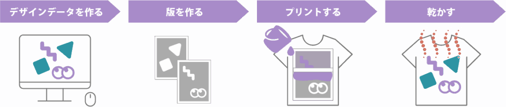 シルクプリントは、インクを“版”を使って生地に直接刷り込むプリント方法です。